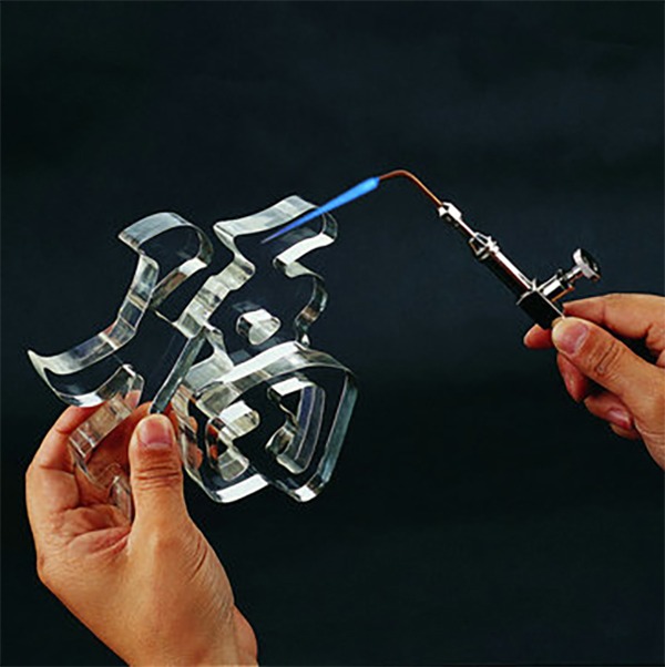 Akryl je leštený plameňom s plameňom pri teplote medzi 2700-3300 ° C. Týmto sa roztaví povrch akrylu a stane sa čírym.