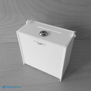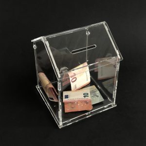 Číra plexi pokladnička 12x12x12 cm je vyrobená z kvalitného plexiskla hrúbky 3 mm. Plexisklové pokladničky sa používajú na zber darov počas charitatívnych alebo verejných akcii. Plexi pokladničku je možne umiestniť buď pri pokladni v predajni alebo na recepčnom pulte hotelu. Pokladnička ma rozmer 12x12x12 cm (š*v*h). Hore je umiestnený otvor veľkosťou 60*6 mm (d*v) na vkladanie žrebov. Plexisklová pokladnička je uzamykateľná a ma 2 kľúče.
