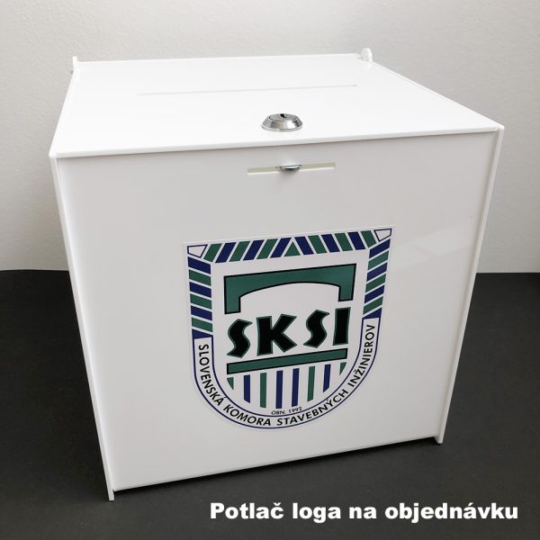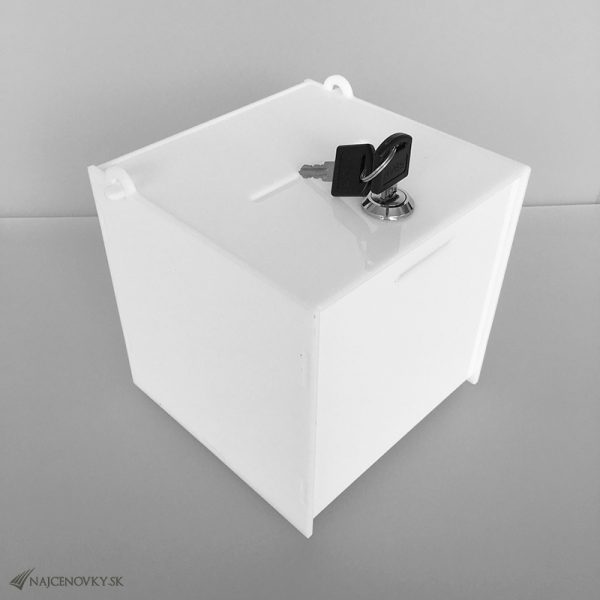 Hlasovací box 20x20x20 cm z plexiskla so zámkom, biely