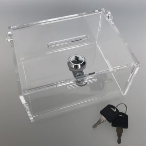 Hlasovací box 20x20x20 cm z plexiskla so zámkom, biely môže byť umiestený na verejných miestach ako sú obchody, hypermarkety, administratívne priestory, autobusové a železničné stanice, výstavy a veľtrhy. Hlasovací box je vyrobený z kvalitného bieleho plexiskla (PMMA) s hrúbkou 3 mm. Akrylový box je rozmerom 200*200*200 mm (š*h*v). Vo vrchnej časti boxu sa nachádza otvor na vkladanie lístkov rozmerom 120*6 mm. Hlasovací box je uzamykateľný. Zámok s 2 kľúčmi sú súčasťou balenia. Hlasovacia urna je pevná a ma lesklé hrany. Materiál hlasovacieho boxu je odolný voči slnečnému žiareniu.