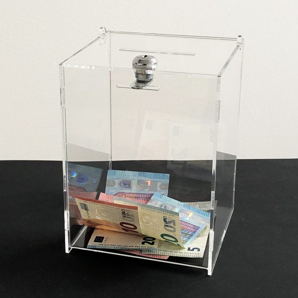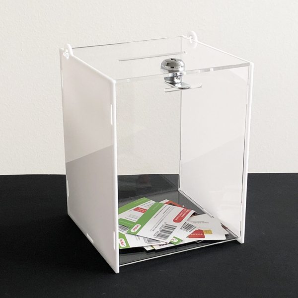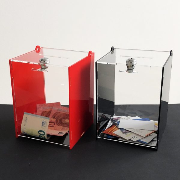 Plexisklový box je v dnešnej dobe veľmi vyhľadávaný a preto má miesto v našom portfóliu výrobkov. Do plastovej urny zbierame najčastejšie letáky, finančné prostriedky, kartičky, prospekty. Ďalšia výhoda je bezúdržbovosť. Dizajn vás okamžite zaujme, nedá sa prehliadnuť. Plexi box je navrhnutý tak aby vám zabezpečil, čo najväčšie pohodlie a komfort. Navyše vám ponúkame aj farebné varianty. Červená plexi urna sa skvele hodí na zbieranie peňazí napríklad pre charitatívne organizácie. Čierny box z plexiskla sa môže použiť na zozbieranie vizitiek, kartičiek alebo reklamných letáčikov. Biely plexisklový box je možné použiť na zhromaždenie súťažných kupónov alebo ústrižkov, napríklad na veľtrhu alebo na mieste s veľkým počtom ľudí. Transparentná farba plexi boxu je klasickou možnosťou výberu. Táto plexi urna sa môže využiť na voľbách, súťažiach alebo pri anketách.